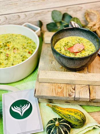 Frischen Grünkohl bekommt man in den Wintermonaten zwischen November und Februar. Diese Zeit sollte man gut nutzen und den frischen Genuss so oft genug genießen. Wir verzichten aus Sahne und haben stattdessen Schmelzkäse genutzt. Wer es vegetarisch mag, darf hier gerne auf die Kohlwurst verzichten. Schnell gemixt kann man diesen im Thermomix zubereiten. Natürlich kann man auch Kartoffeln ergänzen.