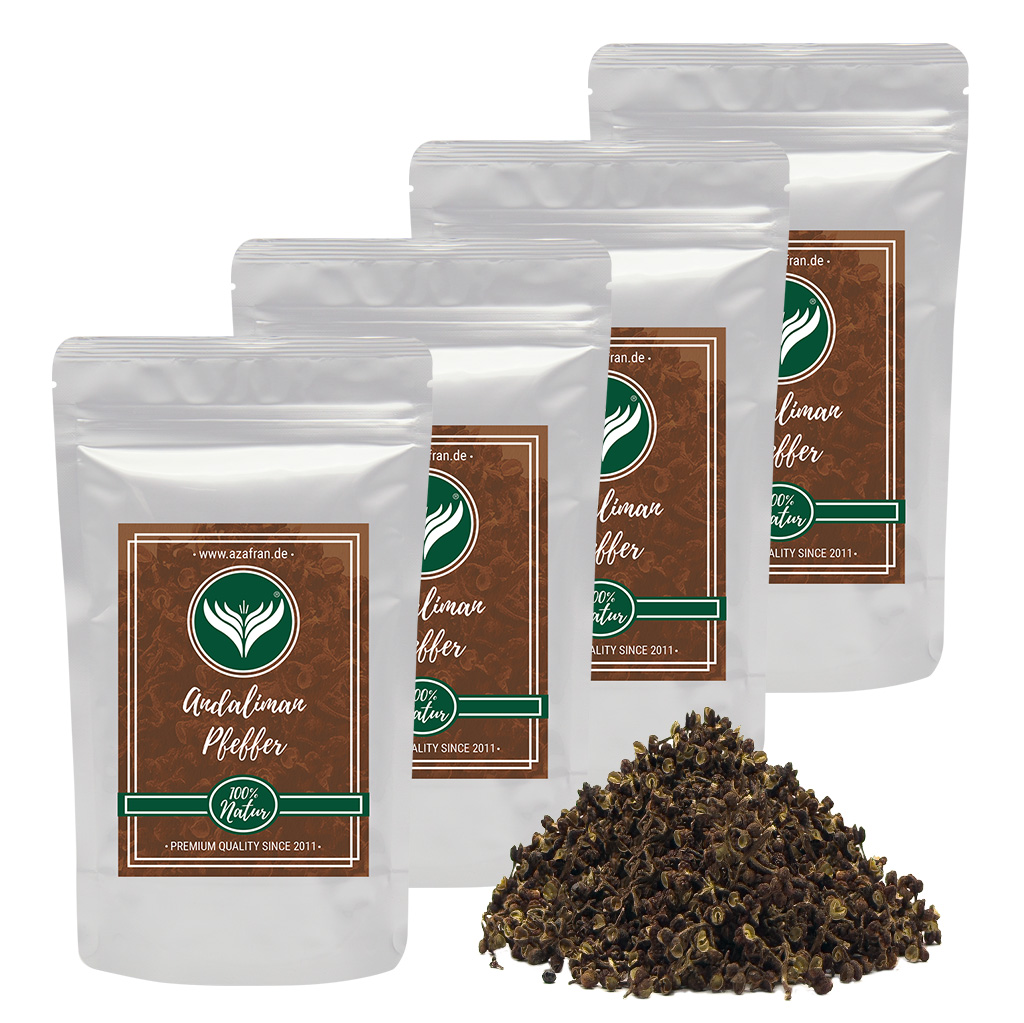 Praktisch im Großpackungskauf, bleibt sein einzigartiger Geschmack durch luft- und lichtgeschützte Aromatüten erhalten. Verwenden Sie ihn frisch zerstoßen im Mörser oder kreativ in Ihren Gerichten – erleben Sie kulinarische Höhepunkte mit unserem Andaliman Pfeffer!