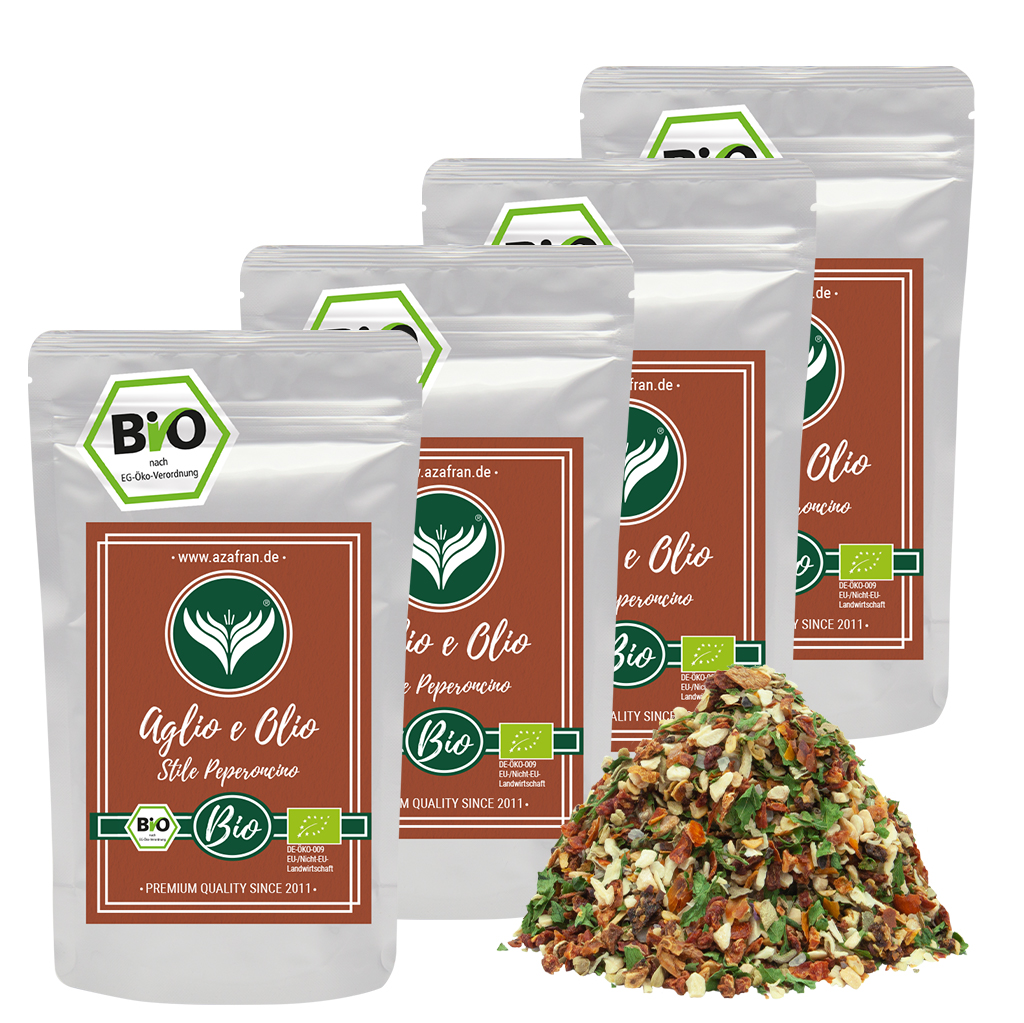 BIO Aglio e Olio Gewürzzubereitung im Aromabeutel (à 250 Gramm) verpackt (Versandkostenfrei innerhalb von Deutschland geliefert).