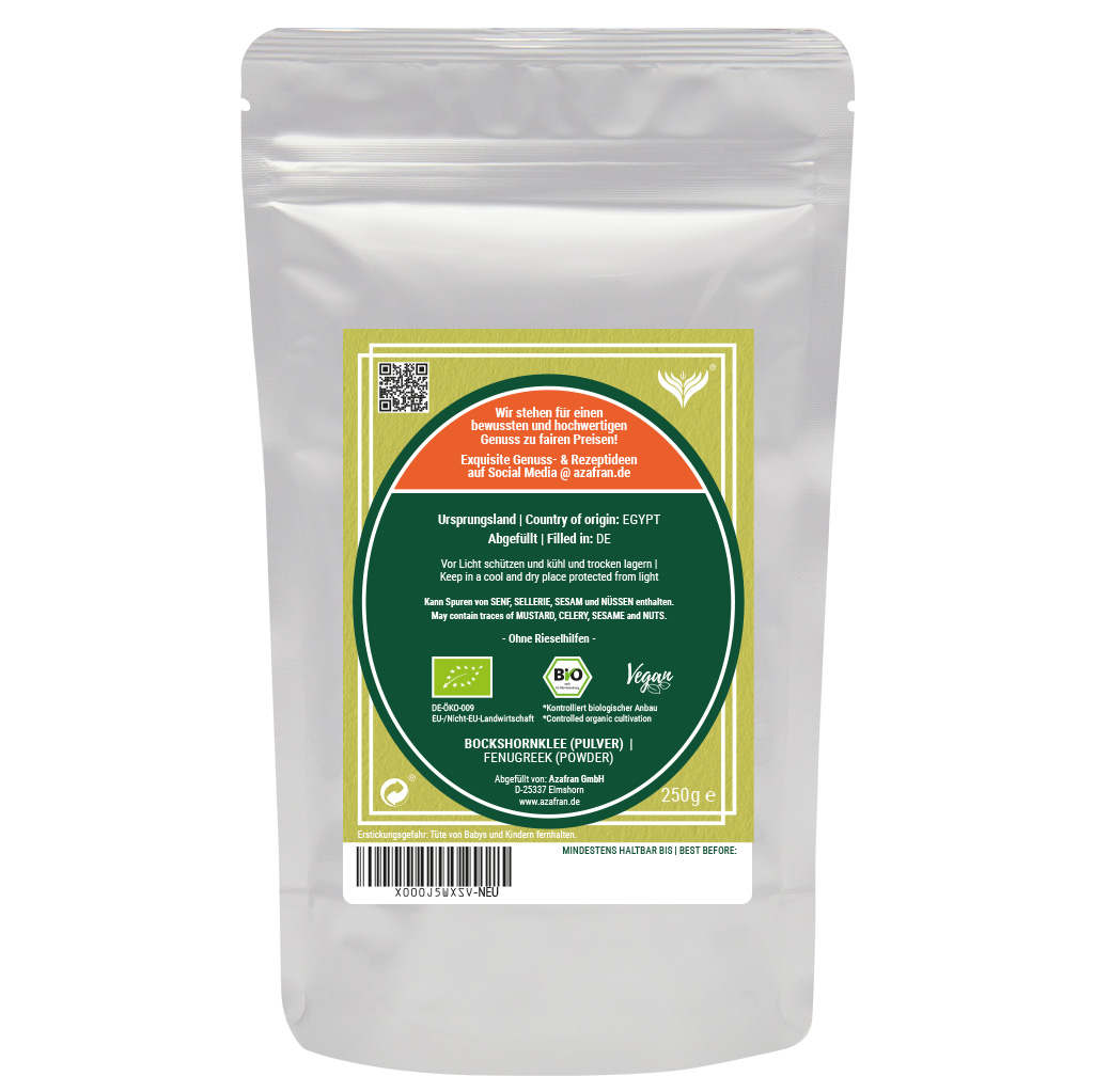 Bockshornklee im wiederverschließbaren Aromabeutel (à 250 Gramm) verpackt (Versandkostenfrei innerhalb von Deutschland geliefert).