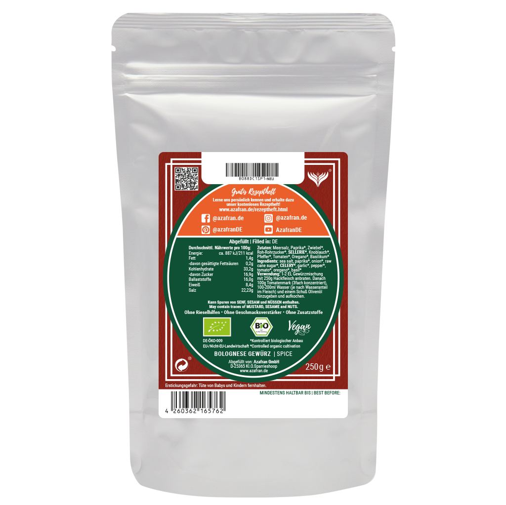 BIO Bolognese Gewürzzubereitung im Aromabeutel (à 50 Gramm) verpackt (Versandkostenfrei innerhalb von Deutschland geliefert).