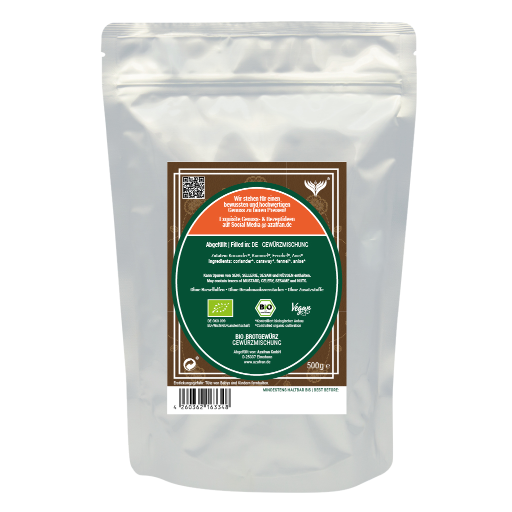 BIO-Brot Gewürzmischung im Aromabeutel (à 500 Gramm) verpackt (Versandkostenfrei innerhalb von Deutschland geliefert).