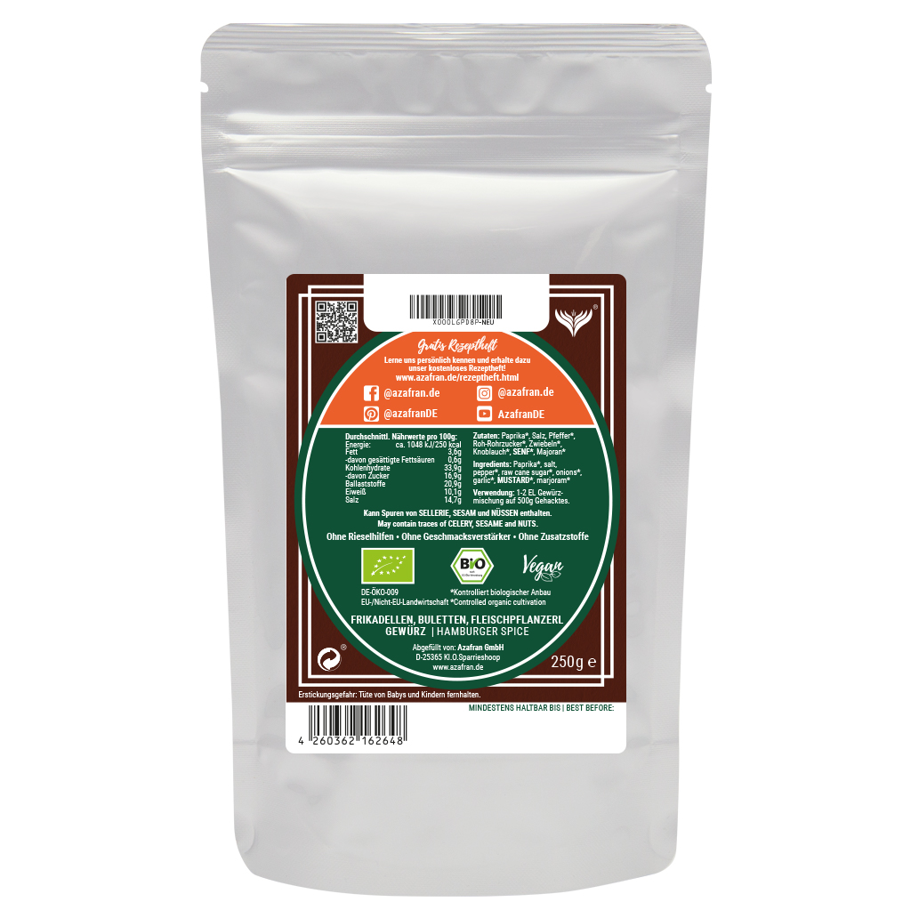 BIO-Burger und Hackfleisch Gewürz im Aromabeutel (à 50 Gramm) verpackt (Versandkostenfrei innerhalb von Deutschland geliefert).
