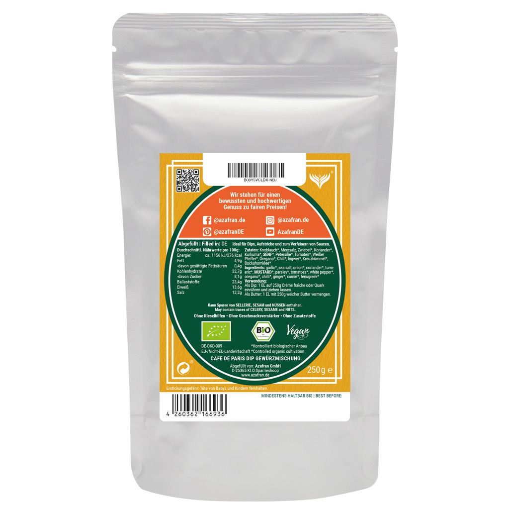 Bei unserem BIO Café de Paris handelt es sich um eine eigene Gewürzentwicklung aus hochwertigen Bio Zutaten.