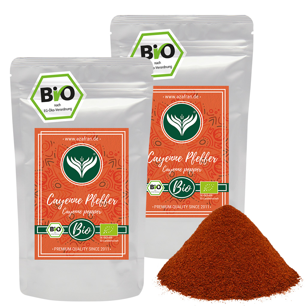 Hinweis: Unser Cayenne ist ein scharfes Chili Pulver welches allerdings nicht aus der dazugehörigen Cayenne Pflanze (Capsicum annuum var. acuminatum) gewonnen wird, sondern aus anderen Chili Sorten.