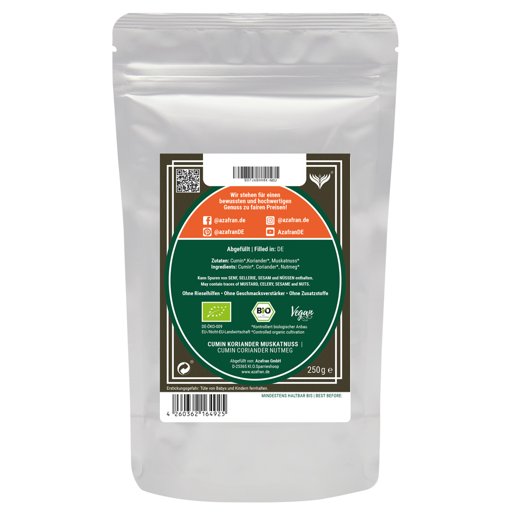 BIO Kreuzkümmel (Cumin), Koriander und Muskatnuss Gewürzmischung im Aromabeutel (à 50 Gramm) verpackt (Versandkostenfrei innerhalb von Deutschland geliefert).