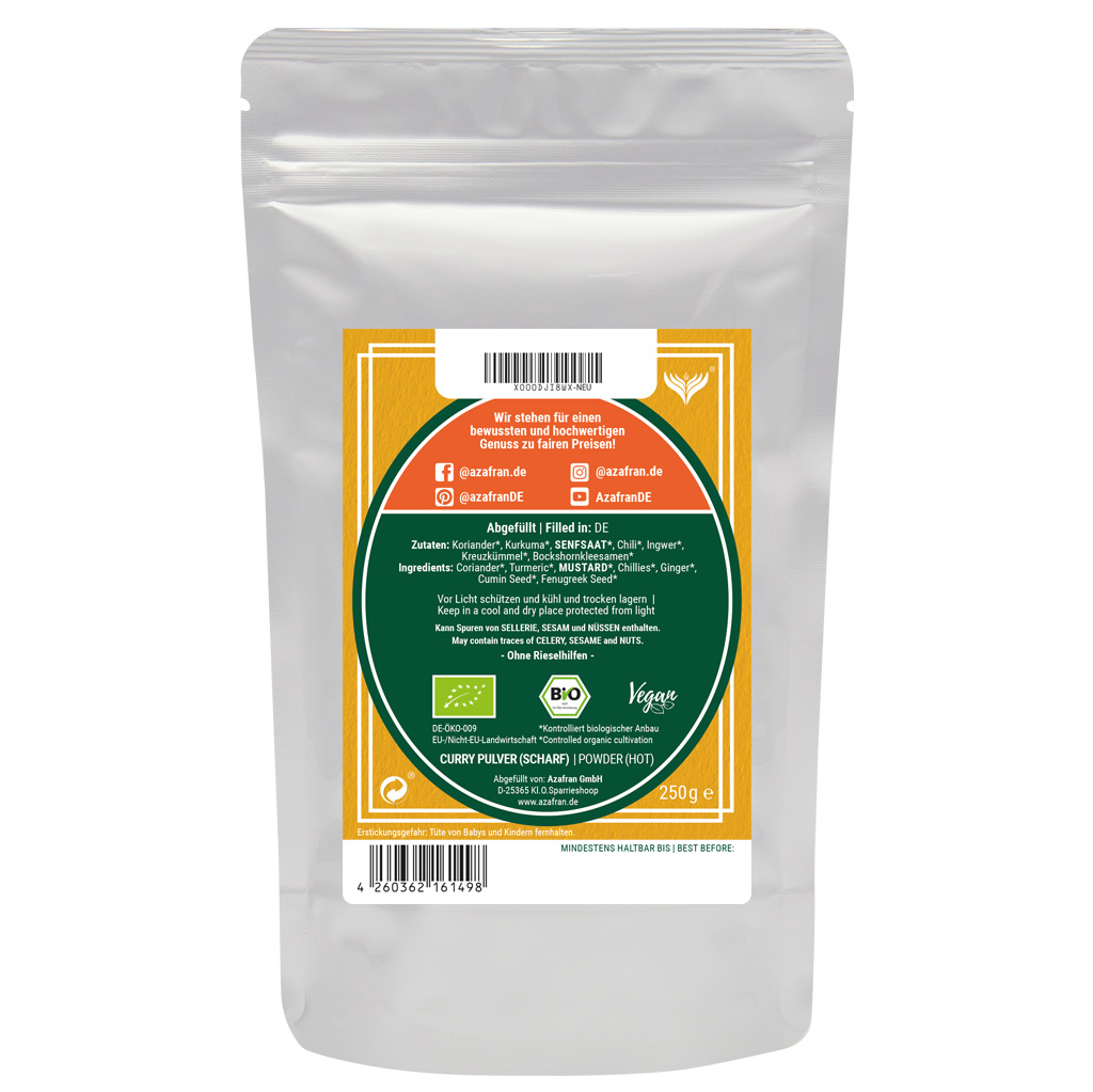 Currypulver (scharf) im Aromabeutel (à 50g) verpackt (Versandkostenfrei innerhalb von Deutschland geliefert).