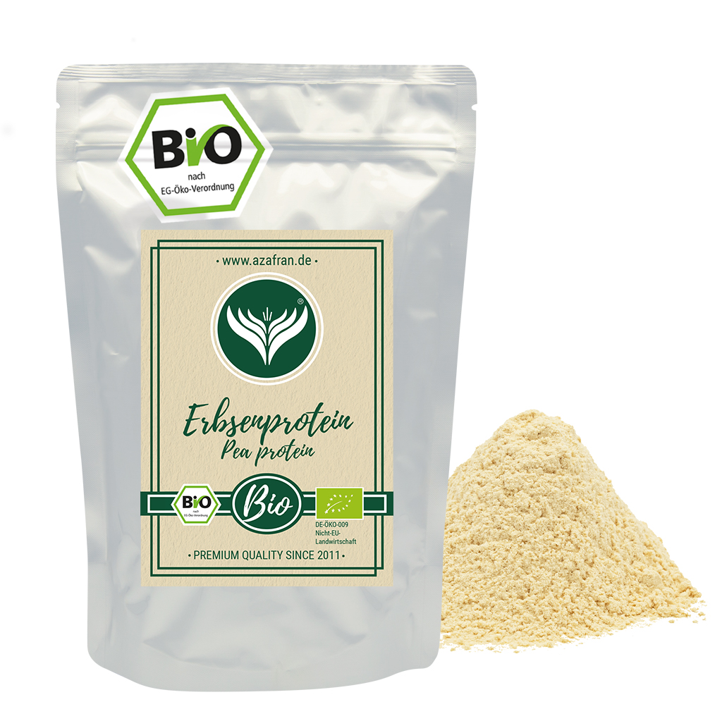 BIO Erbsenproteinpulver im Aromabeutel (à 500 Gramm) verpackt (Versandkostenfrei innerhalb von Deutschland geliefert).