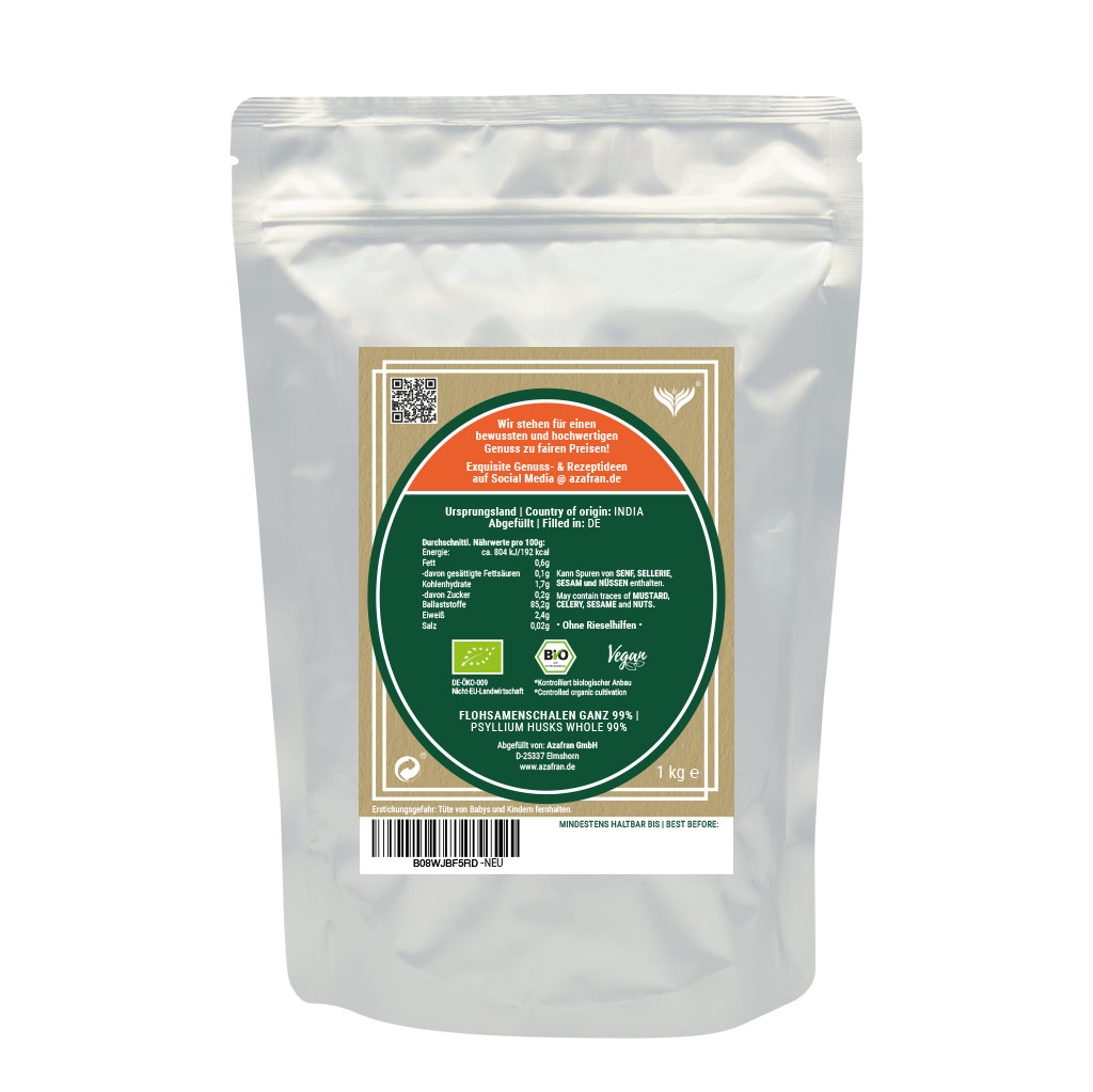 BIO Flohsamenschalen im Aromabeutel (à 1kg) verpackt (Versandkostenfrei innerhalb von Deutschland geliefert).