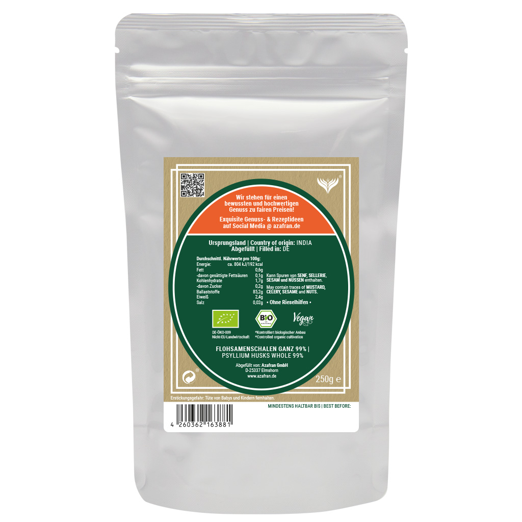BIO Flohsamenschalen im Aromabeutel (à 250 Gramm) verpackt (Versandkostenfrei innerhalb von Deutschland geliefert).