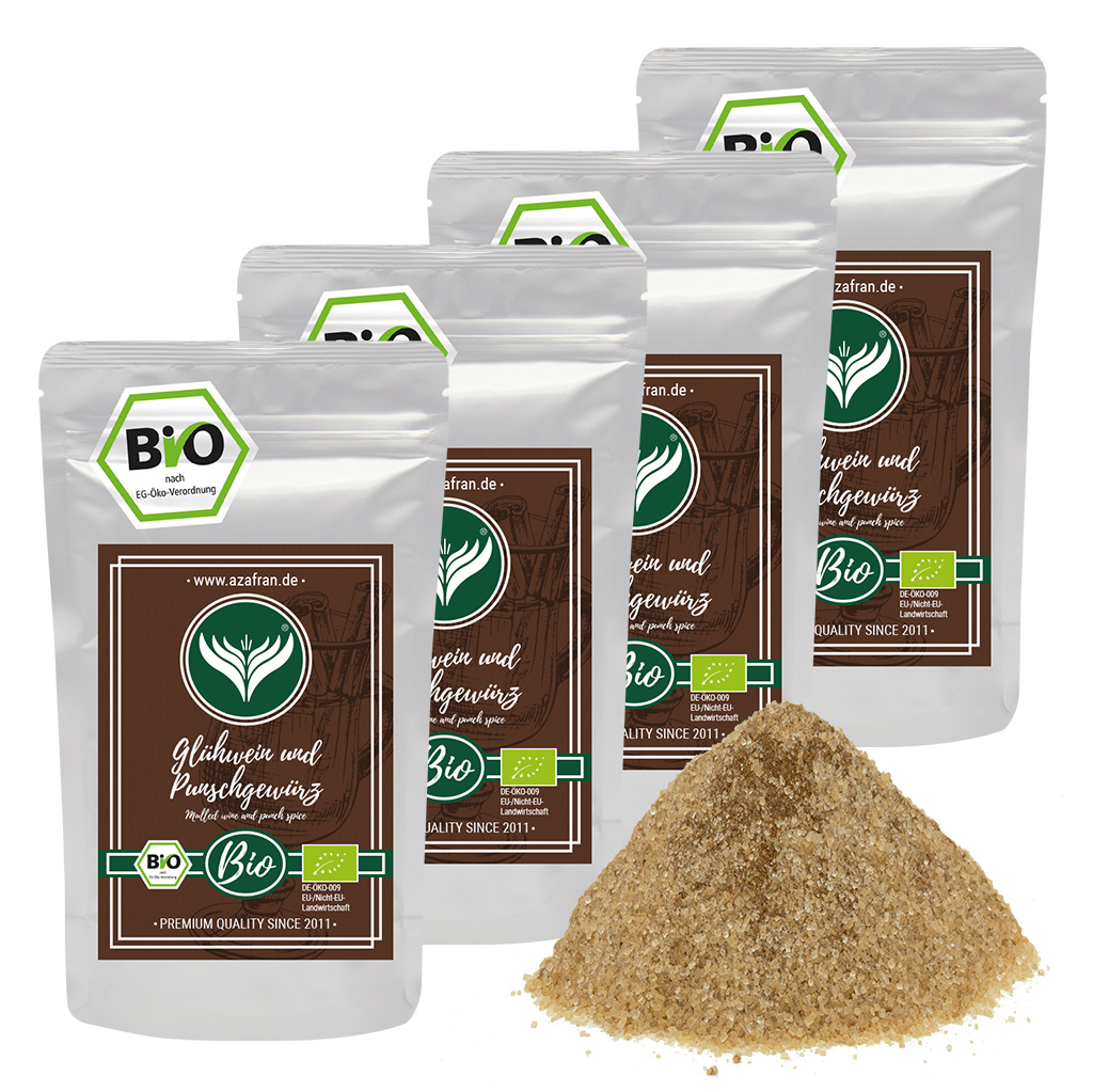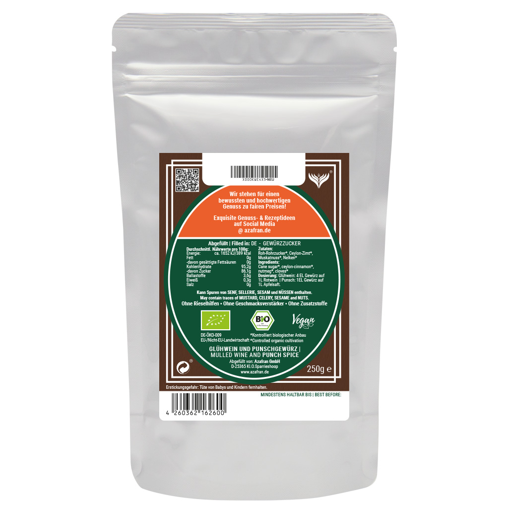 BIO-Glühwein- und Punsch-Gewürzzuckerim Aromabeutel (à 250 Gramm) verpackt (Versandkostenfrei innerhalb von Deutschland geliefert).