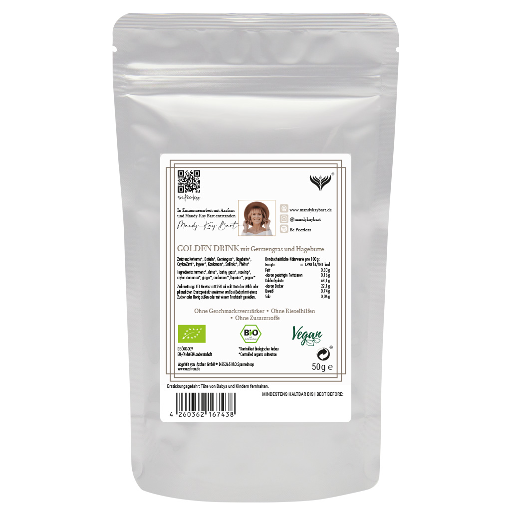Diese Gewürzmischung eignet sich besonders zur Erstellung einer Kurkuma Latte bzw. Goldenen Milch. Entwickelt wurde die Mischung zusammen mit Mandy-Kay Bart (Ehemalige Schauspielerin eines reality´s Formates, bekannte Influencerin und erfolgreiche Persönlichkeitstrainerin www.mandykaybart.de)