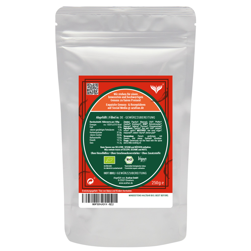 BIO Grillmarinade HOT Gewürzzubereitung im Aromabeutel (à 250 Gramm) verpackt (Versandkostenfrei innerhalb von Deutschland geliefert).