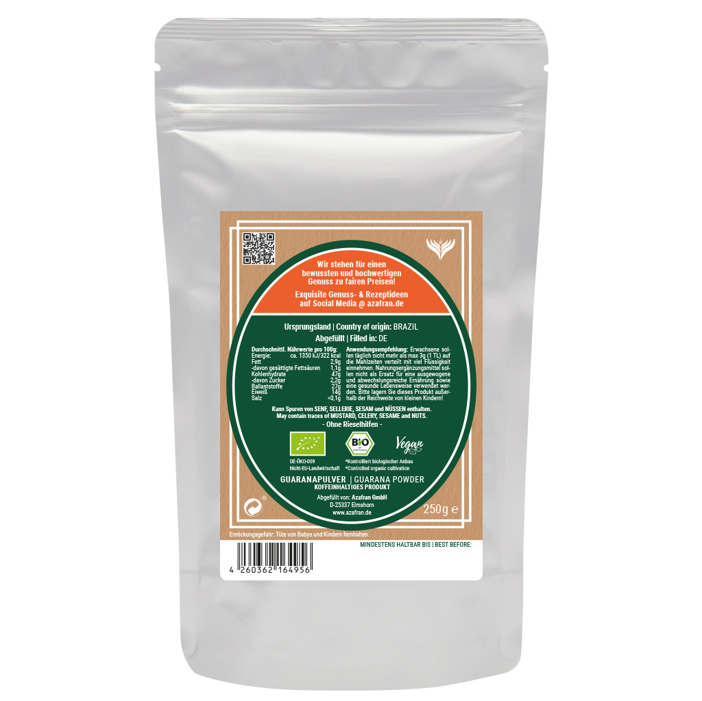 BIO Guaranapulver im Aromabeutel (à 250 Gramm) verpackt (Versandkostenfrei innerhalb Deutschland geliefert).