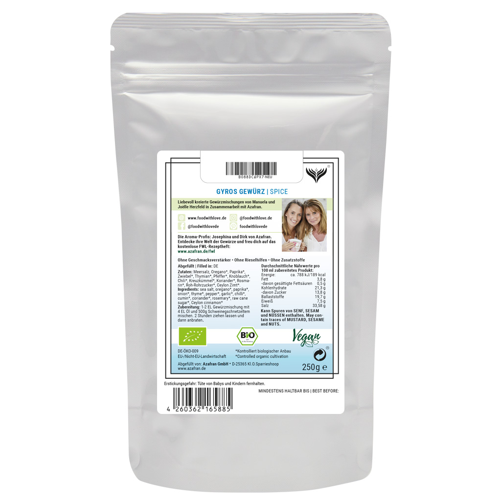 BIO Gyros Gewürzzubereitung im Aromabeutel (à 250 Gramm) verpackt (Versandkostenfrei innerhalb von Deutschland geliefert).
