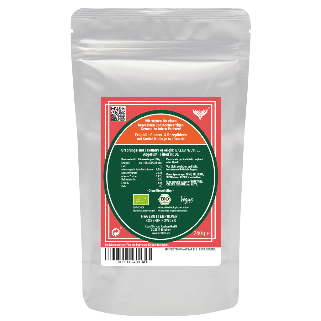 BIO Hagebuttenpulver im Aromabeutel (à 250 Gramm) verpackt (Versandkostenfrei innerhalb von Deutschland geliefert).