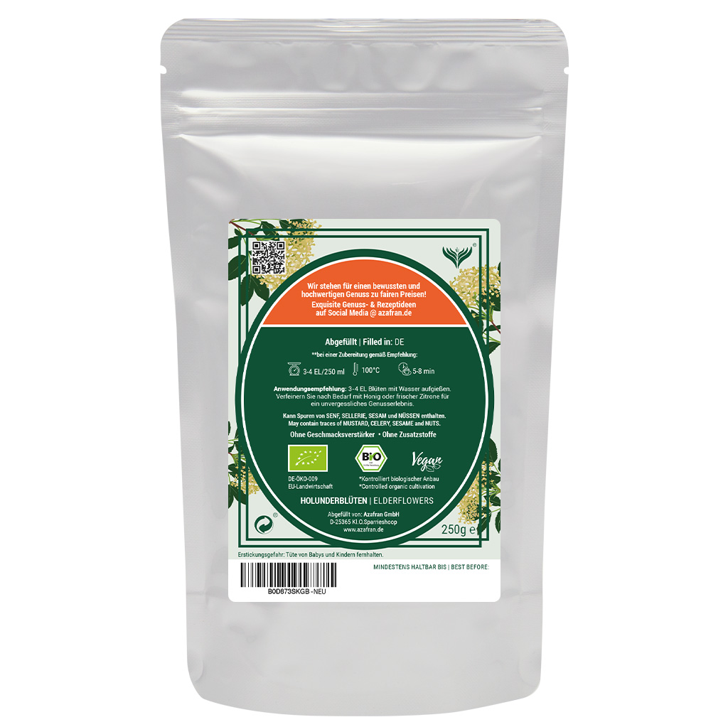 BIO Holunder Blüten im Aromabeutel (à 250 Gramm) verpackt (Versandkostenfrei innerhalb von Deutschland geliefert).
