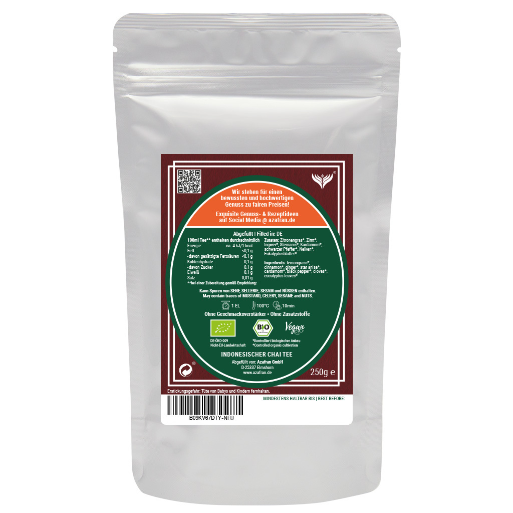 BIO Indonesischer Chai Tee im Aromabeutel (à 250 Gramm) verpackt (Versandkostenfrei innerhalb von Deutschland geliefert).