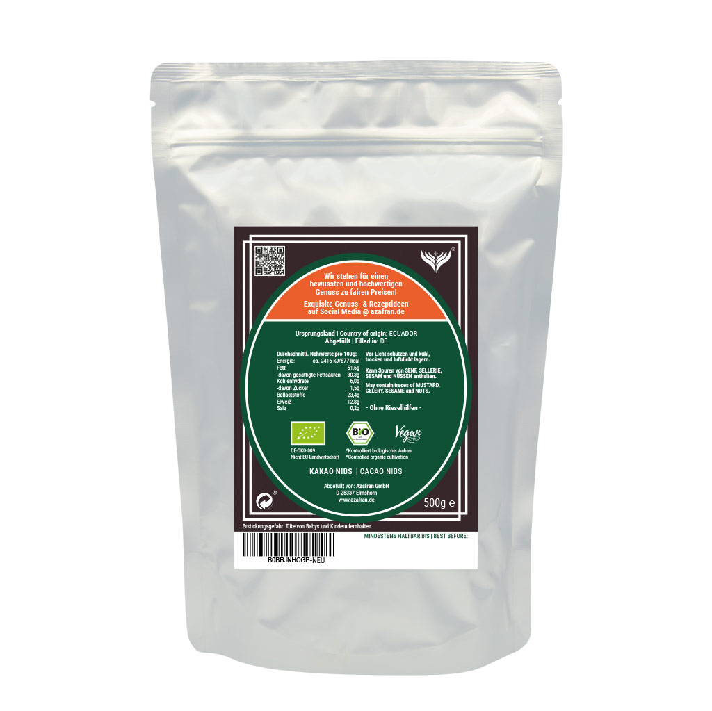BIO Kakao Nibs im Aromabeutel (à 500 Gramm) verpackt (Versandkostenfrei innerhalb Deutschland geliefert).