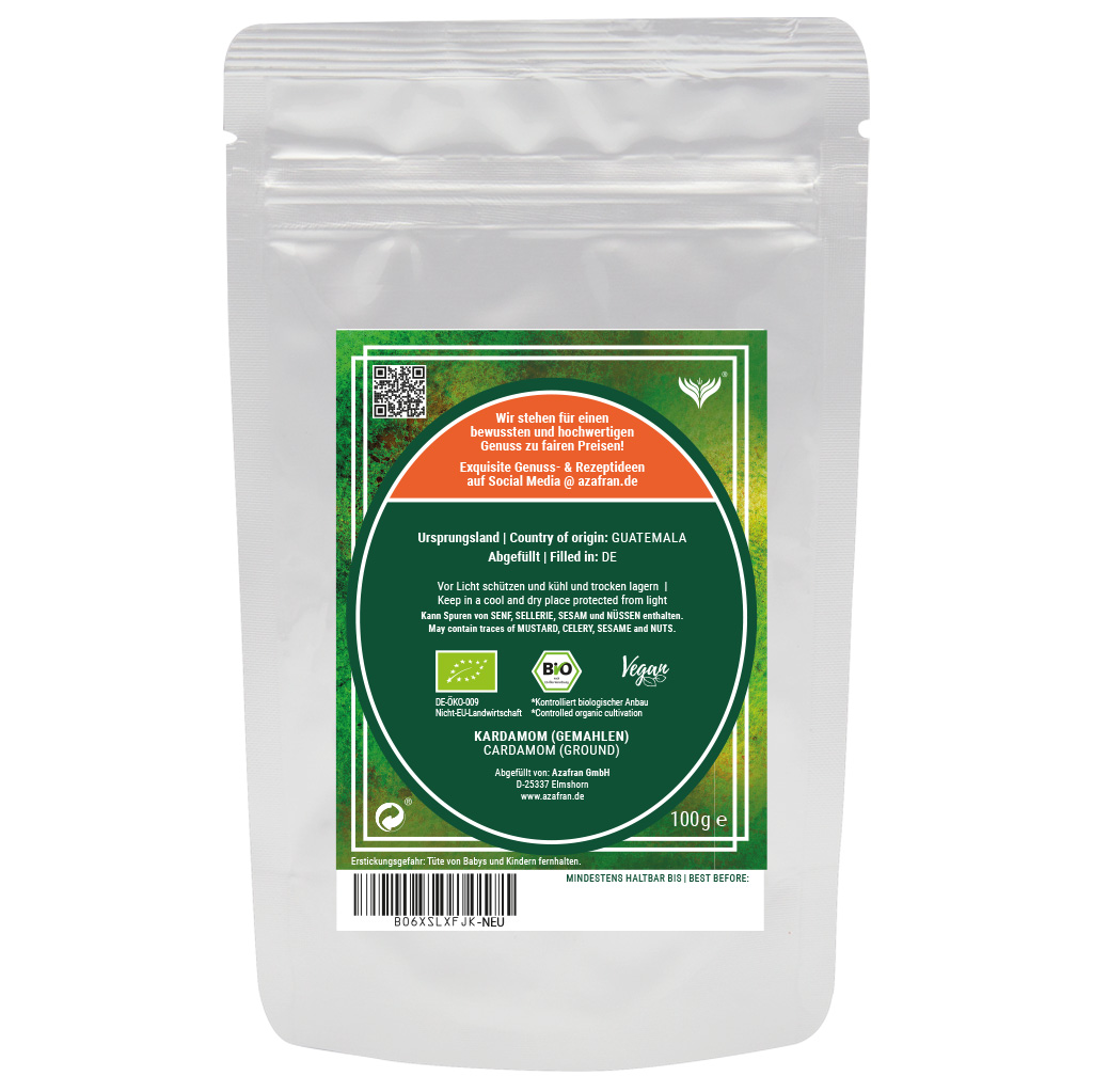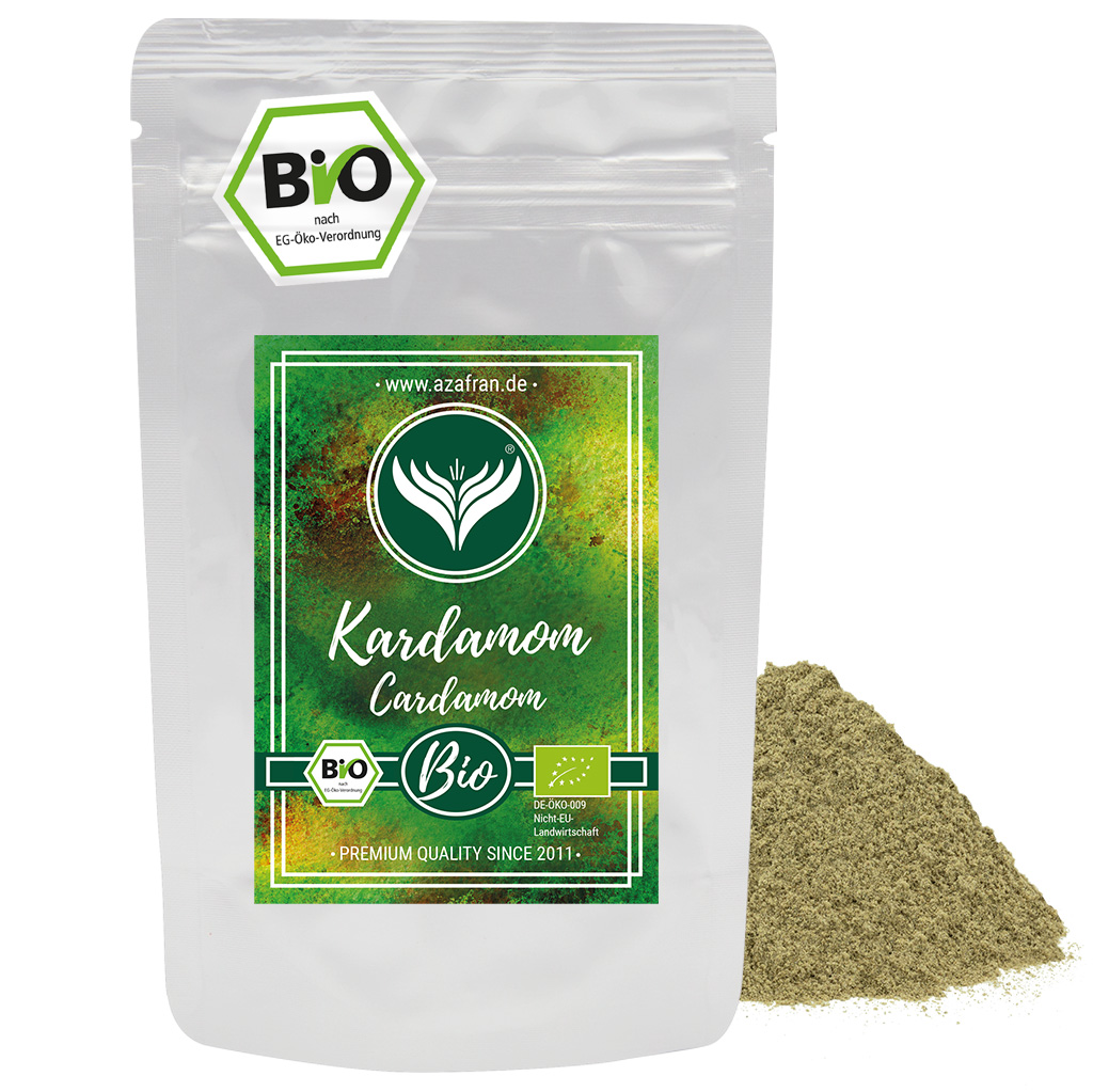 Ganze Kardamomkapseln gemahlen, Premium BIO-Qualität im wiederverschließbaren Aromabeutel (à 100 Gramm) verpackt (Versandkostenfrei innerhalb von Deutschland geliefert).