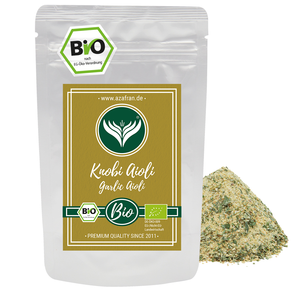 BIO Knoblauch Aioli Gewürzzubereitung im Aromabeutel (à 50 Gramm) verpackt (Versandkostenfrei innerhalb von Deutschland geliefert).