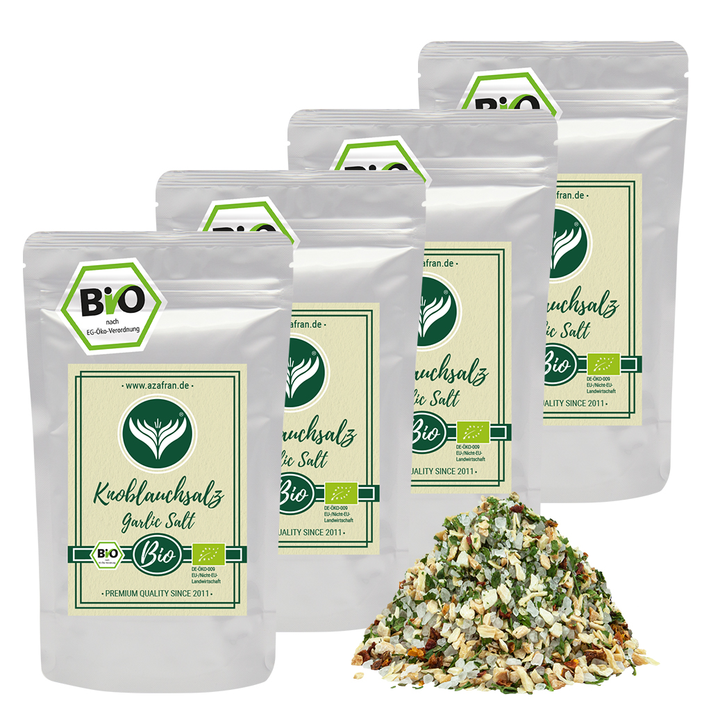 BIO Knoblauchsalz im Aromabeutel (à 250 Gramm) verpackt (Versandkostenfrei innerhalb von Deutschland geliefert).