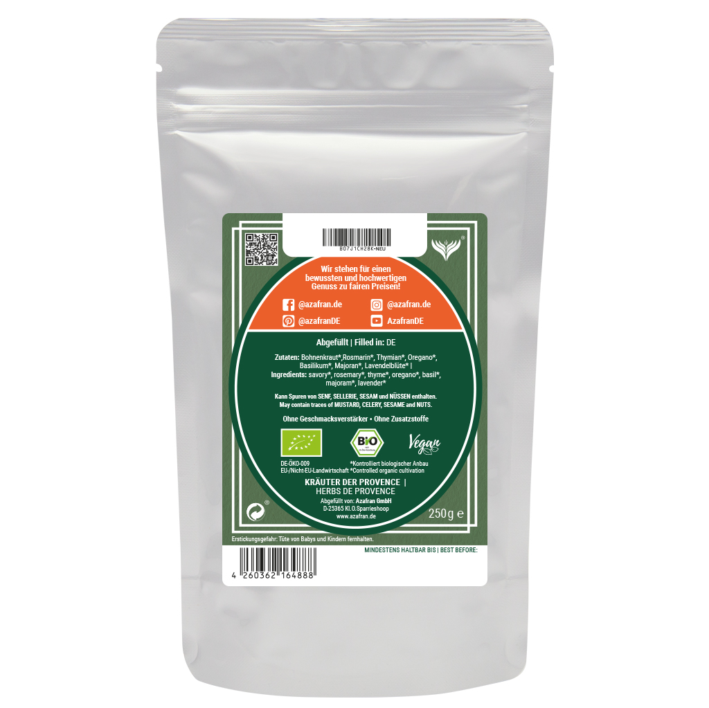 BIO Kräuter der Provence Gewürzmischung im Aromabeutel (à 250 Gramm) verpackt (Versandkostenfrei innerhalb von Deutschland geliefert).