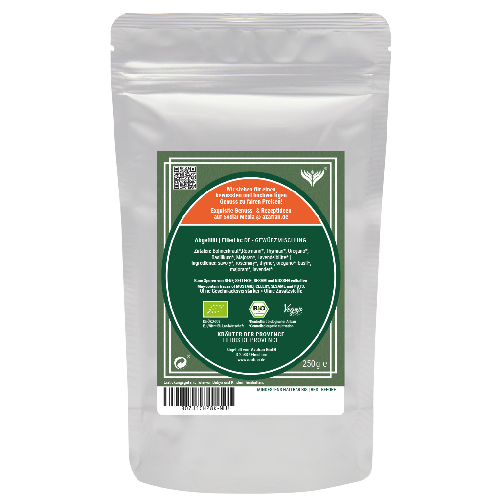 BIO Kräuter der Provence Gewürzmischung im Aromabeutel (à 250 Gramm) verpackt (Versandkostenfrei innerhalb von Deutschland geliefert).