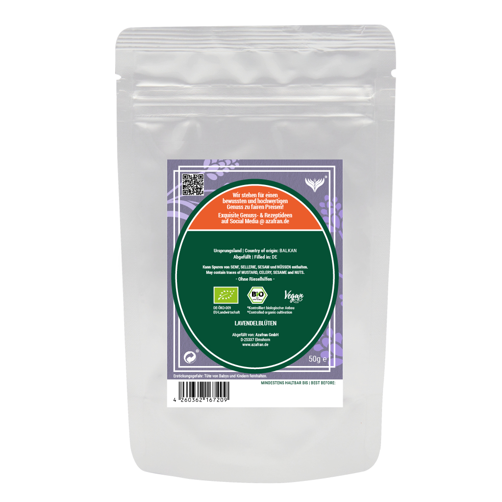 Unser Lavendel stammt aus kontrolliert ökologischem Anbau vom Balkan. Er zeichnet sich durch seinen blumigen Duft und eine herbe sowie markante Note aus. Sein authentisches und charakterstarkes Aroma wird beispielsweise Ihren Tee oder auch die Deko-Duftbeutel perfekt abrunden aber auch zu Fisch- und Fleischgerichten eignet er sich hervorragend.