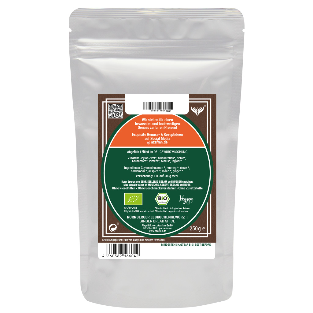 BIO Lebkuchen Gewürzmischung im Aromabeutel (à 250 Gramm) verpackt (Versandkostenfrei innerhalb von Deutschland geliefert).