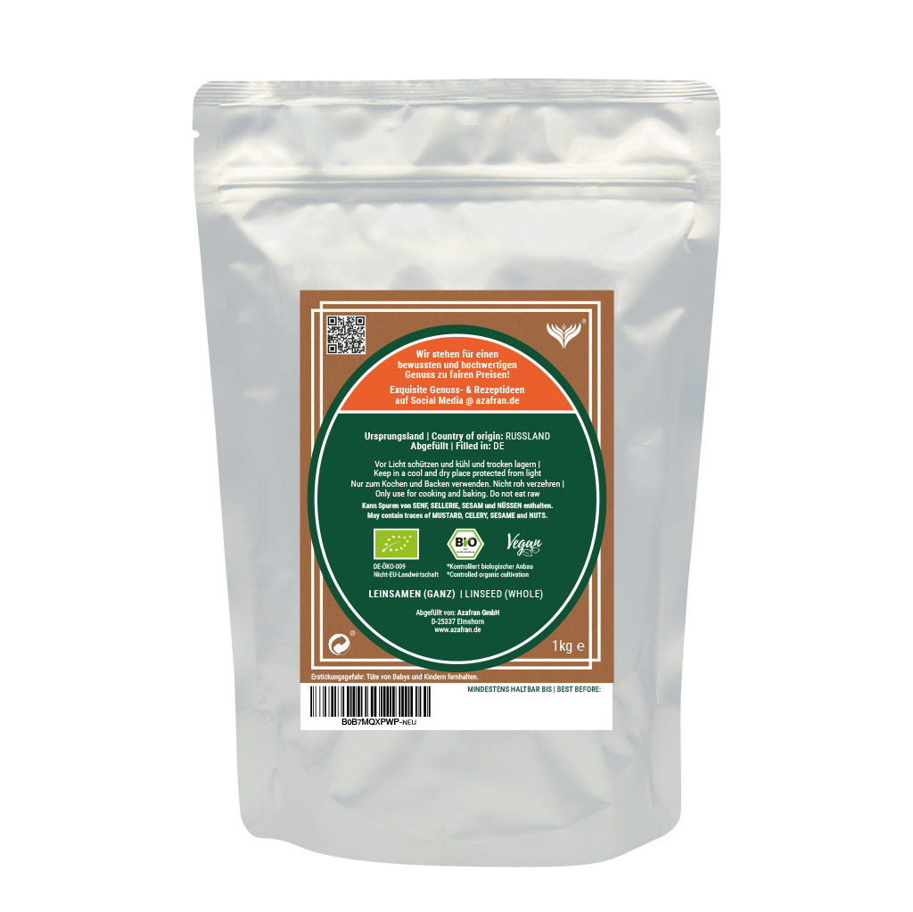 BIO Leinsamen im Aromabeutel (à 1 kg) verpackt (Versandkostenfrei innerhalb von Deutschland geliefert).