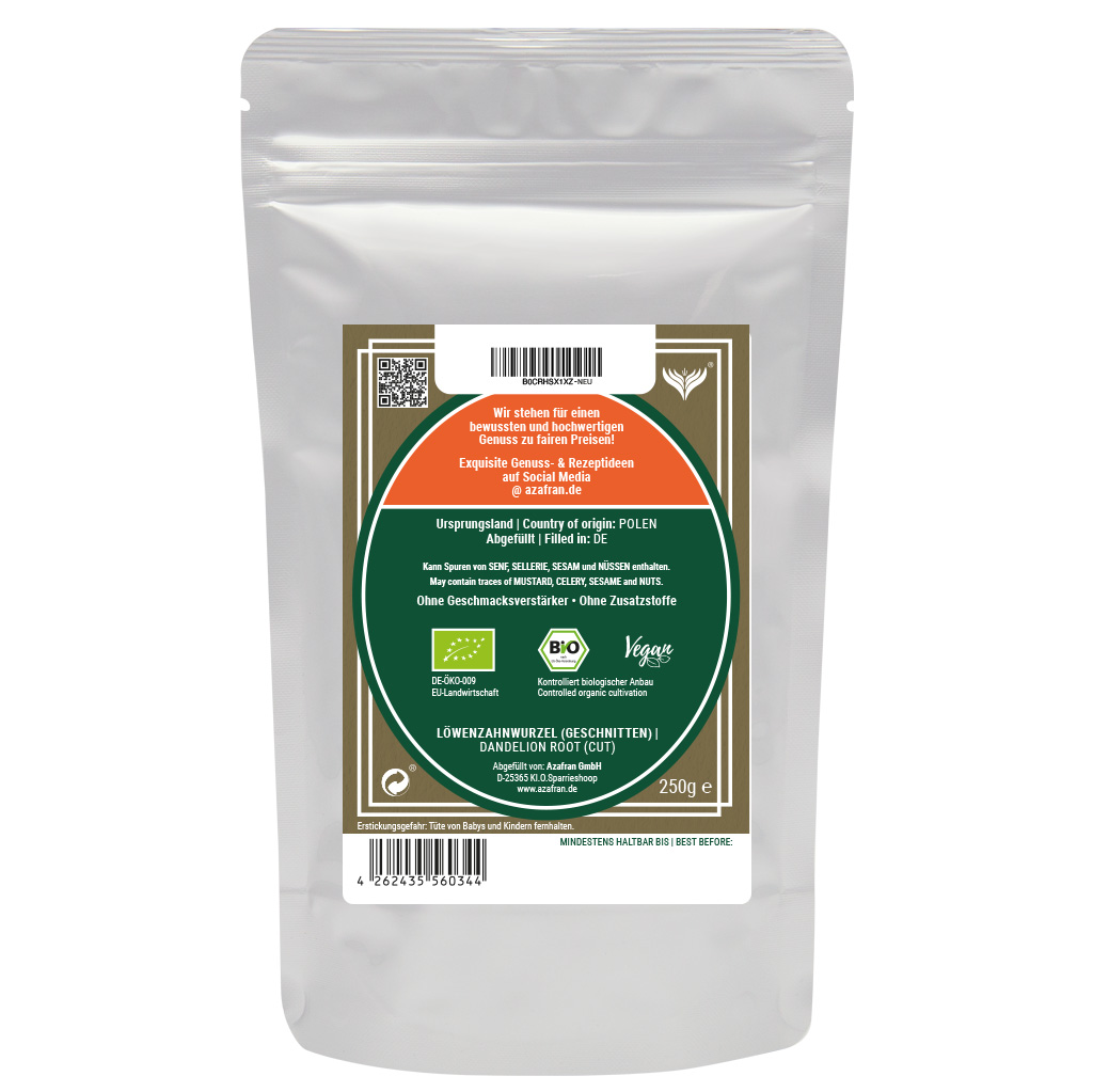BIO Löwenzahn Wurzel geschnitten im Aromabeutel (à 250 Gramm) verpackt (Versandkostenfrei innerhalb von Deutschland geliefert).
