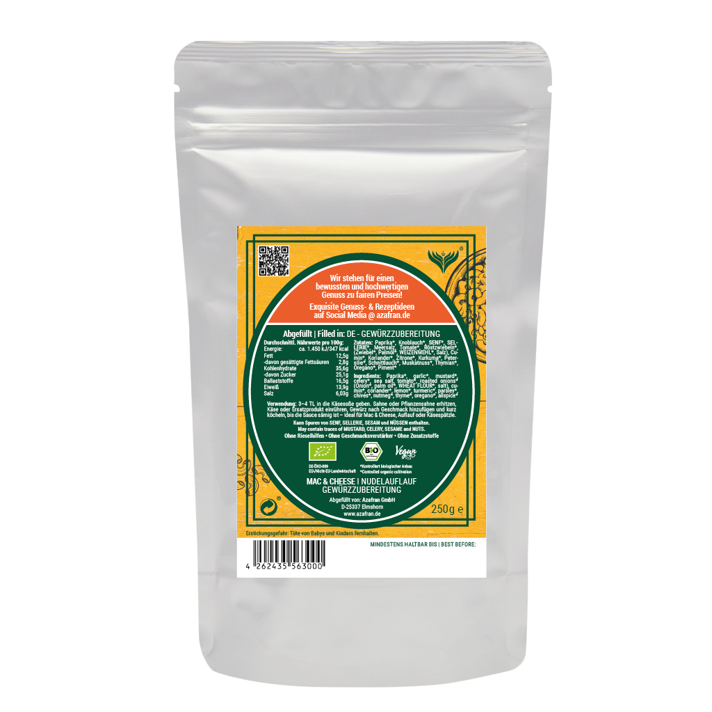 BIO Mac & Cheese Gewürzzubereitung im Aromabeutel (à 250 Gramm) verpackt (Versandkostenfrei innerhalb von Deutschland geliefert).