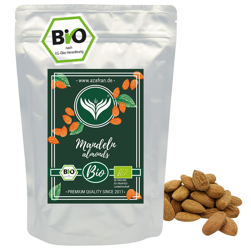 BIO Mandeln ganz im Aromabeutel (à 1kg) verpackt (Versandkostenfrei innerhalb von Deutschland geliefert).