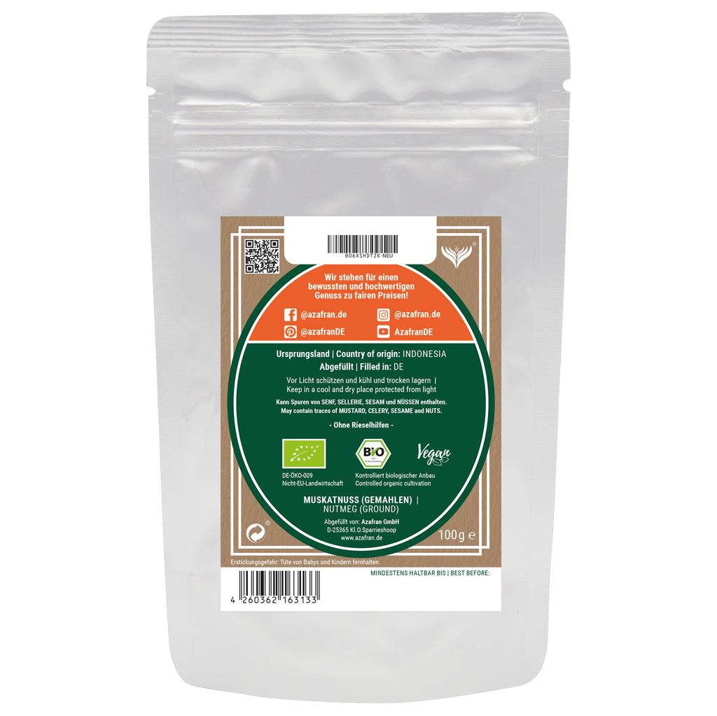 Muskatnüsse gemahlen im Aromabeutel (à 100g) verpackt (Versandkostenfrei innerhalb Deutschland geliefert).