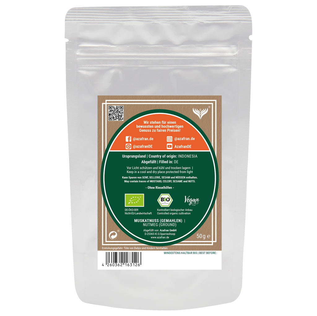 Muskatnüsse gemahlen im Aromabeutel (à 50g) verpackt (Versandkostenfrei innerhalb Deutschland geliefert).