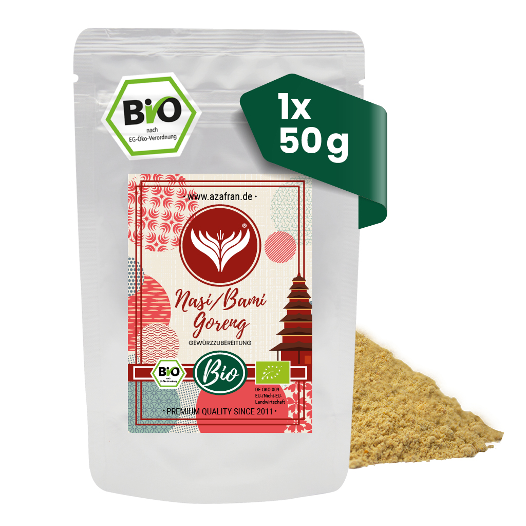 BIO Nasi/ Bami Goreng Gewürzzubereitung im Aromabeutel (à 50 Gramm) verpackt (Versandkostenfrei innerhalb von Deutschland geliefert).
