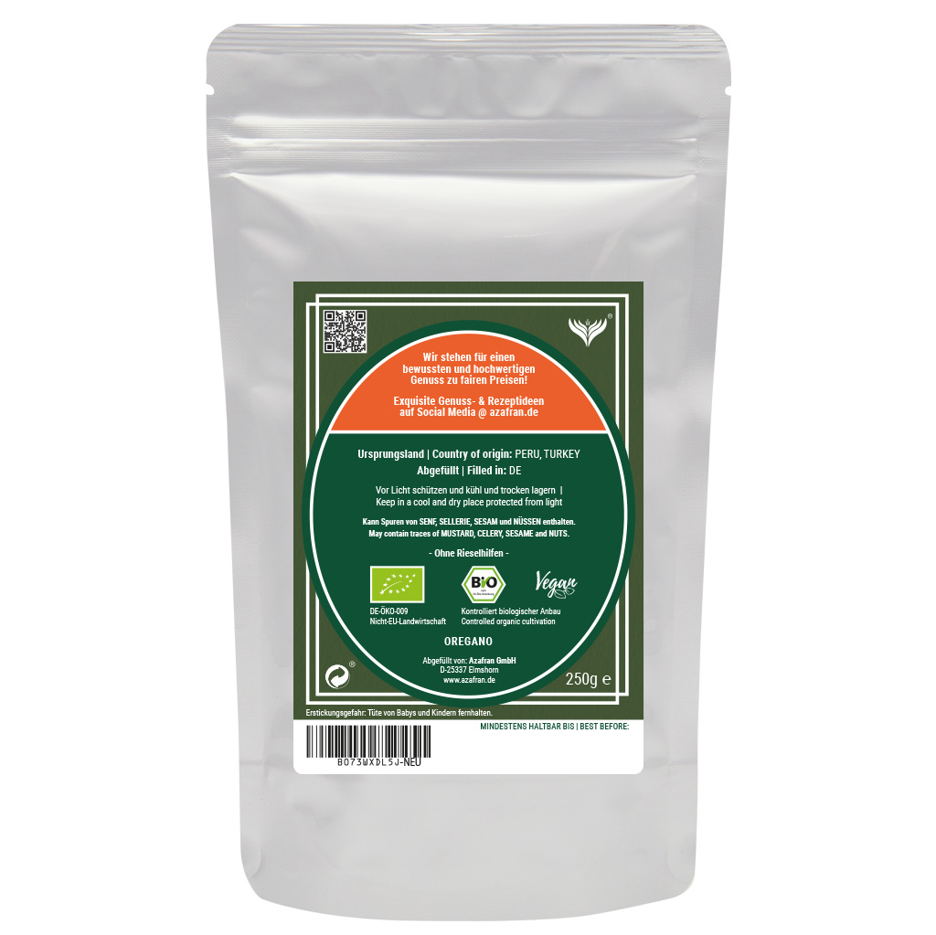 Oregano im wiederverschließbaren Aromabeutel (à 250 Gramm) verpackt (Versandkostenfrei innerhalb von Deutschland geliefert).