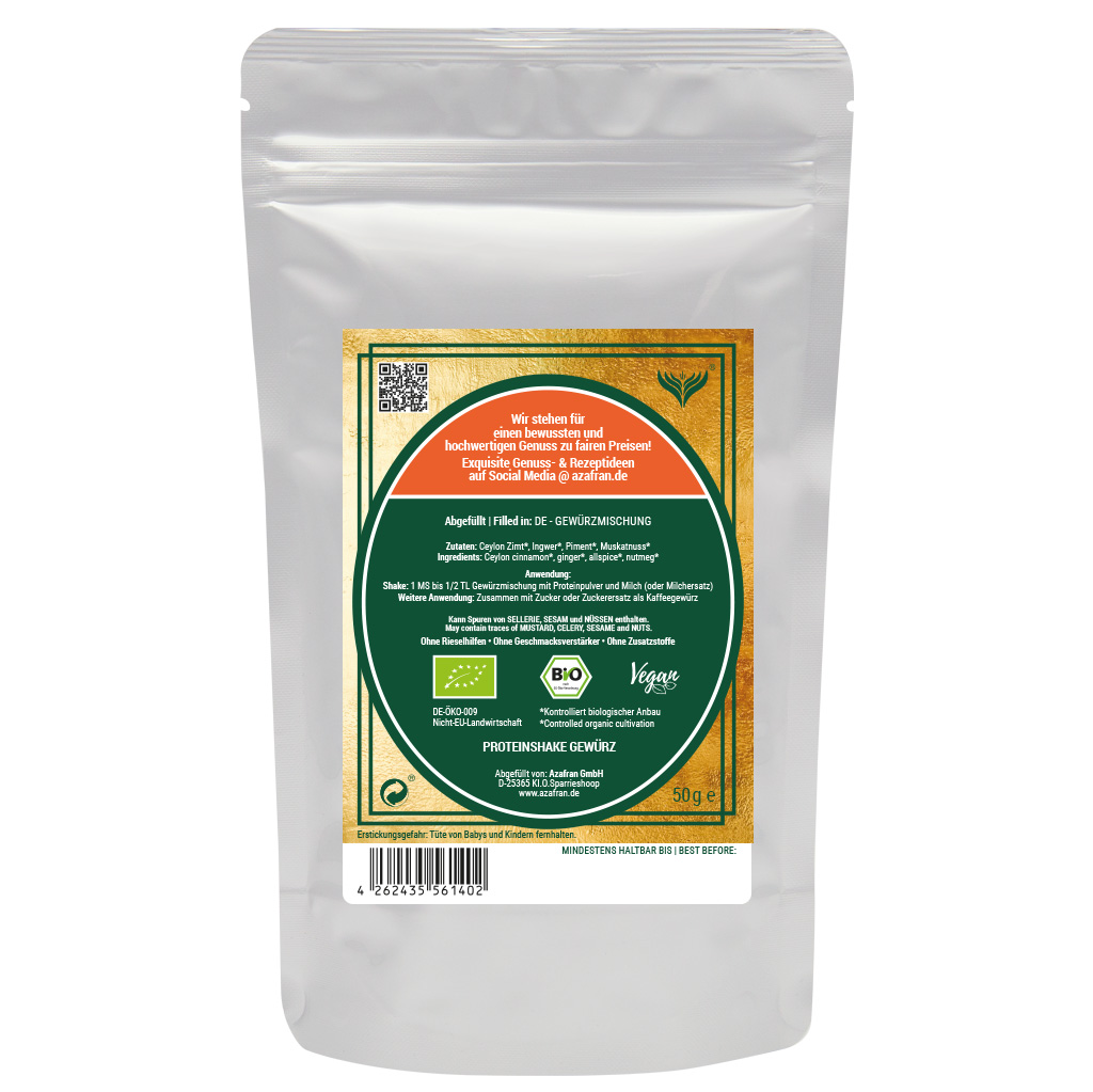 BIO Proteinshake Gewürz im Aromabeutel (à 50 Gramm) verpackt (Versandkostenfrei innerhalb von Deutschland geliefert).