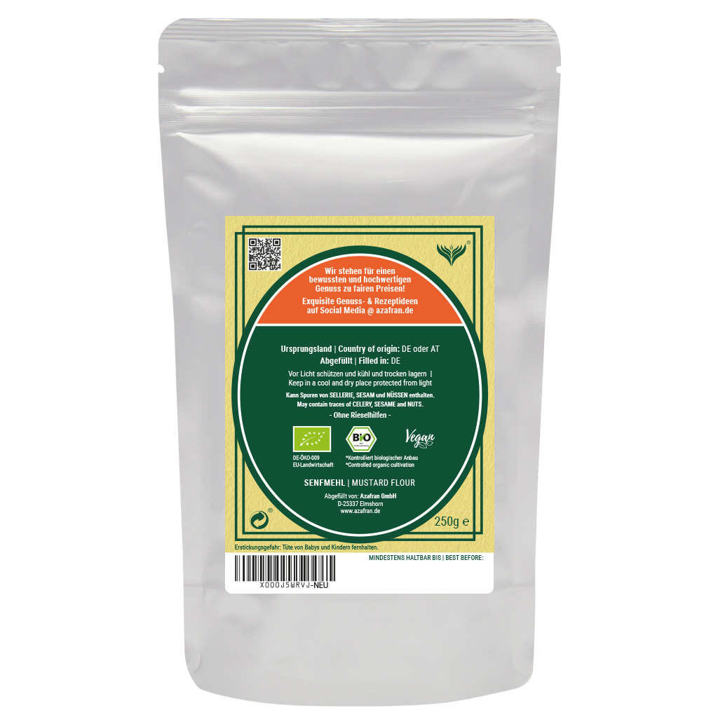 Senfmehl im wiederverschließbaren Aromabeutel (à 250 Gramm) verpackt (Versandkostenfrei innerhalb von Deutschland geliefert).