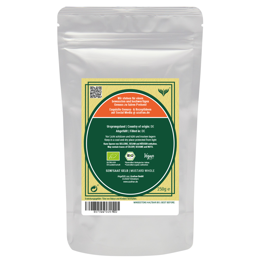 Senfsaat im wiederverschließbaren Aromabeutel (à 250 Gramm) verpackt (Versandkostenfrei innerhalb von Deutschland geliefert).