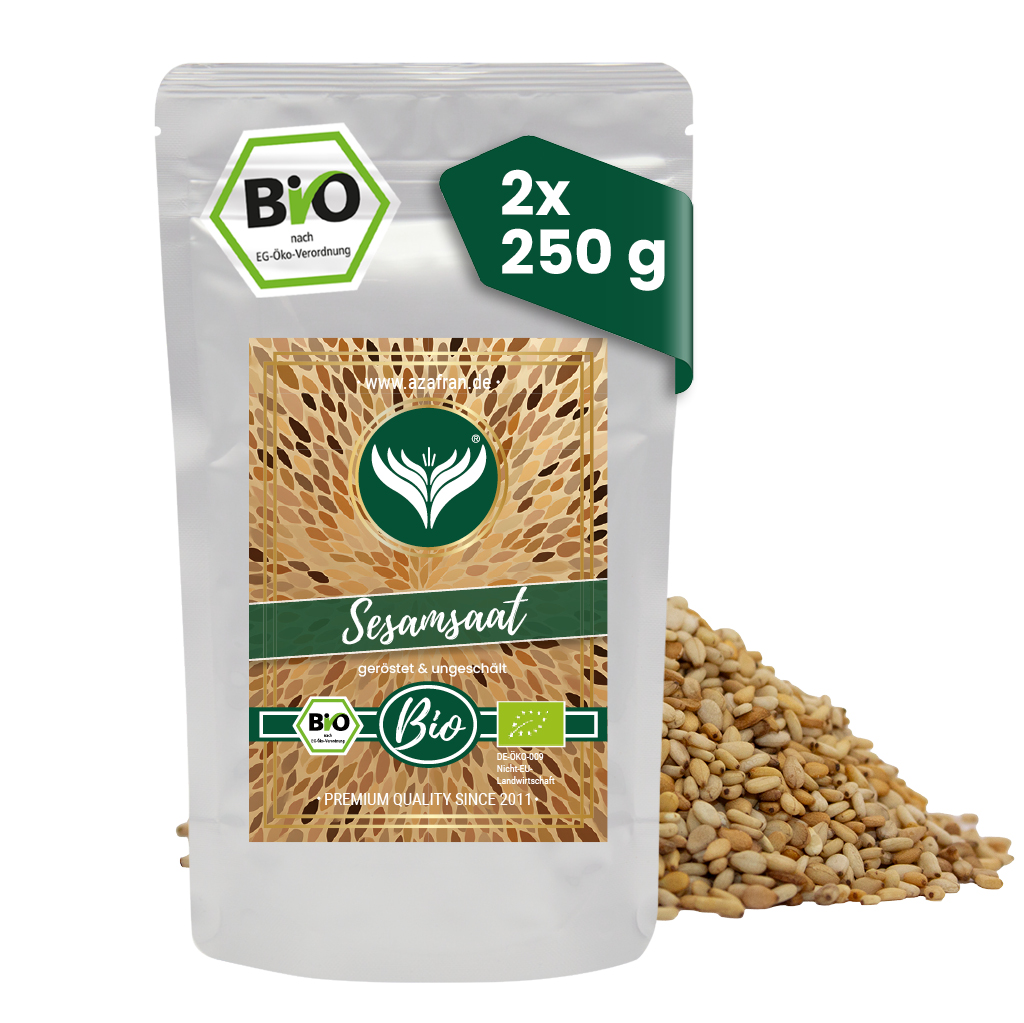 BIO Sesamsaat geröstet ungeschält im Aromabeutel (à 250 Gramm) verpackt (versandkostenfrei innerhalb von Deutschland geliefert).