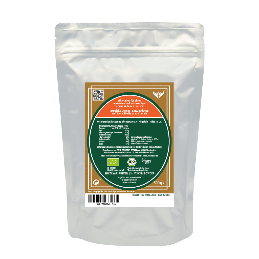 BIO Shatavaripulver im Aromabeutel (á 500 Gramm) verpackt (Versandkostenfrei innerhalb Deutschland geliefert).