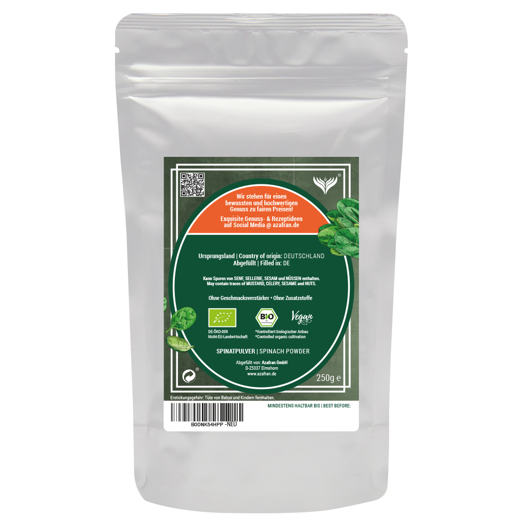 BIO Spinatpulver im Aromabeutel (à 250 Gramm) verpackt (Versandkostenfrei innerhalb von Deutschland geliefert).