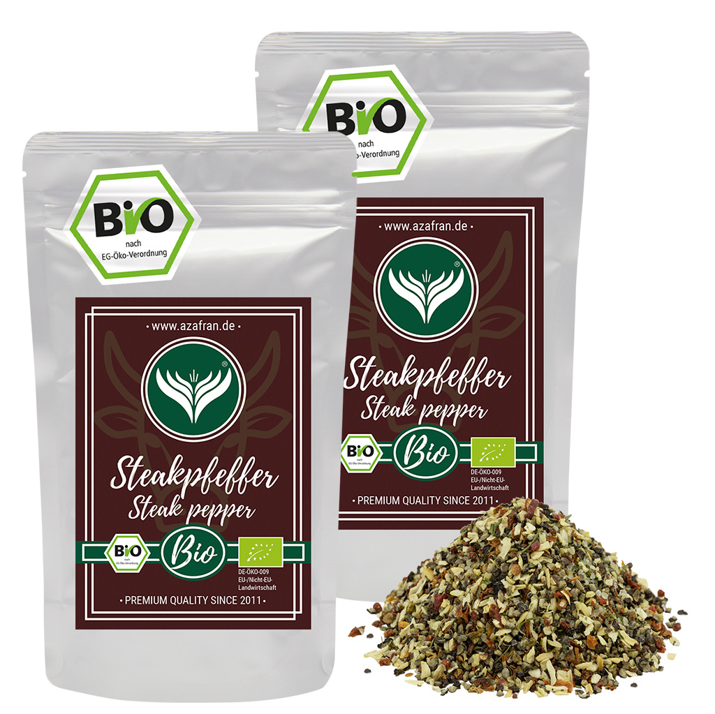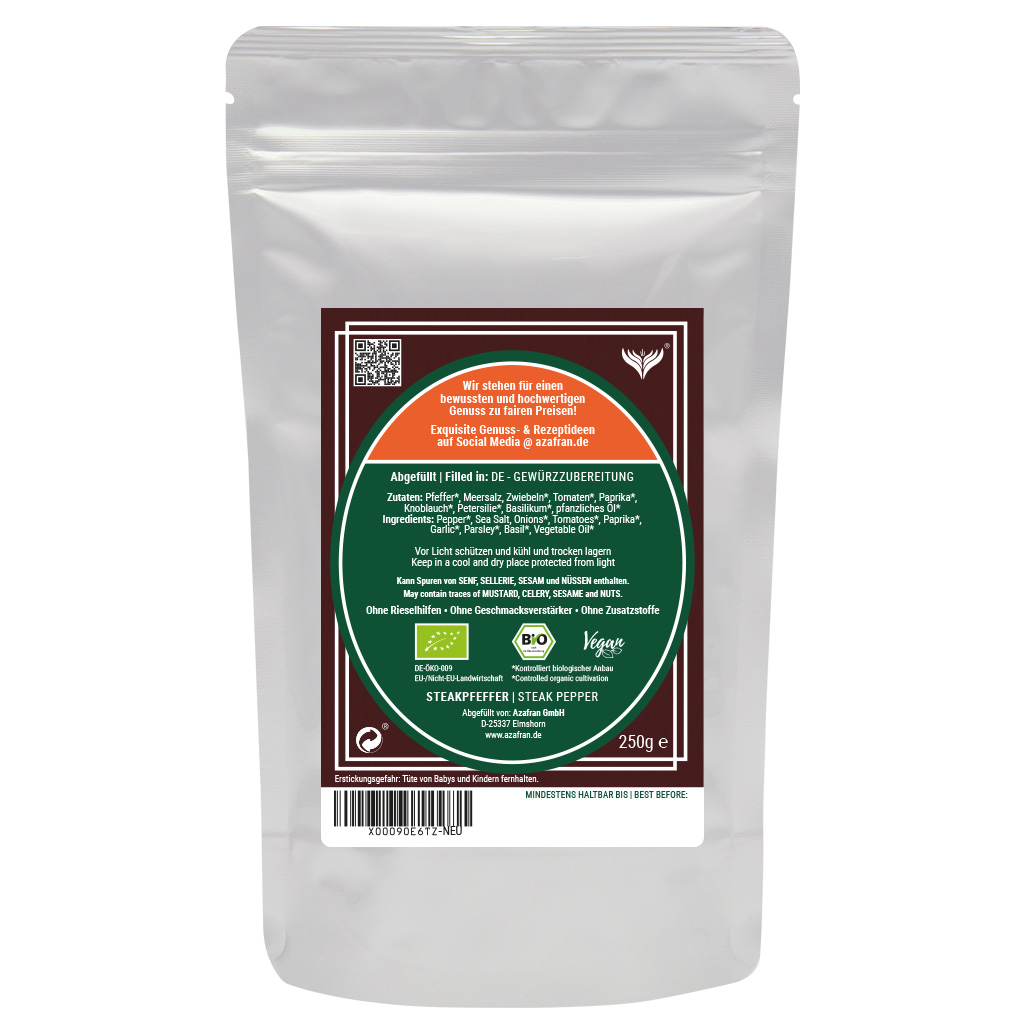 BIO-Steakpfeffer Gewürzzubereitung im Aromabeutel (à 250 Gramm) verpackt (Versandkostenfrei innerhalb von Deutschland geliefert).