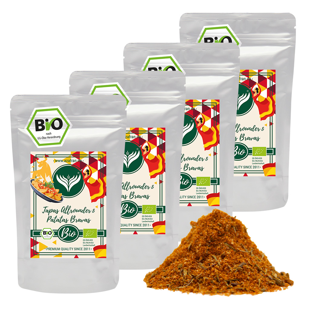 Entdecken Sie die BIO Tapas Allrounder / Patatas Bravas Gewürzzubereitung von Azafran – der perfekte Begleiter für Ihre spanische Küche! Unsere hochwertige Mischung besteht aus biologischen Zutaten und vereint die authentischen Aromen Spaniens in einer perfekten Balance. Ideal für die beliebten Patatas Bravas, knusprige Kartoffelwürfel mit würziger Sauce, eignet sich diese Mischung auch hervorragend für zahlreiche weitere Tapas Gerichte sowie Saucen, Dips, Fleisch, Fisch, Gemüse und Pasta.