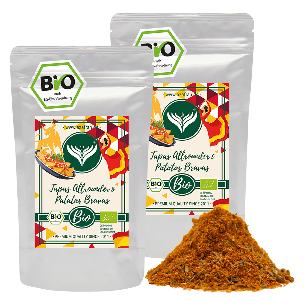 Entdecken Sie die BIO Tapas Allrounder / Patatas Bravas Gewürzzubereitung von Azafran – der perfekte Begleiter für Ihre spanische Küche! Unsere hochwertige Mischung besteht aus biologischen Zutaten und vereint die authentischen Aromen Spaniens in einer perfekten Balance. Ideal für die beliebten Patatas Bravas, knusprige Kartoffelwürfel mit würziger Sauce, eignet sich diese Mischung auch hervorragend für zahlreiche weitere Tapas Gerichte sowie Saucen, Dips, Fleisch, Fisch, Gemüse und Pasta.