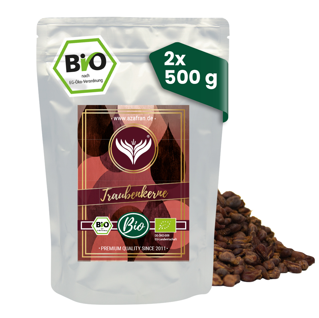 BIO Traubenkerne im Aromabeutel (à 500 Gramm) verpackt (versandkostenfrei innerhalb von Deutschland geliefert).