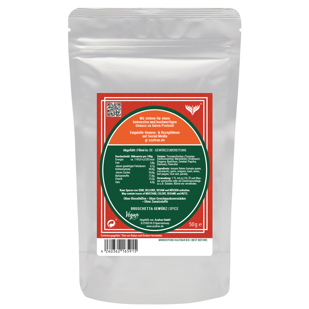 Bruschetta Gewürzzubereitung im Aromabeutel (à 50 Gramm) verpackt (Versandkostenfrei innerhalb von Deutschland geliefert).
