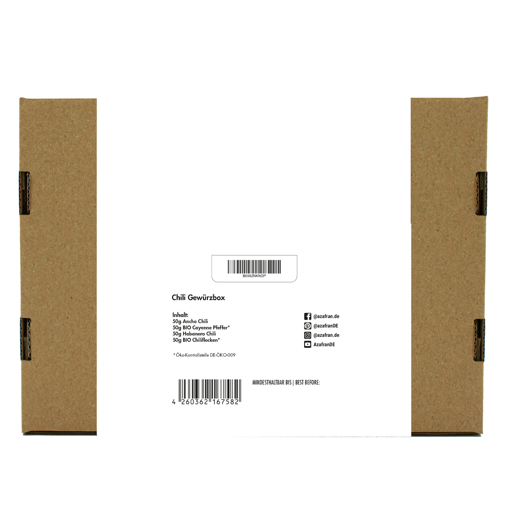 Diese Box heizt Ihren Beschenkten so ordentlich ein. Perfekt für alle, die ihren Speisen und Getränken stets einen feurig-würzigen Schwung verleihen möchten. Die Intensität der Schärfegrade variiert hierbei von mittelscharf bis sehr scharf (Ancho 4/10, Habanero 10/10, Cayenne 6/10, Chiliflocken 6/10 Punkten) und die Aromenvielfalt bewegt sich von fruchtig und leicht rauchig über schokoladig bis hin zu intensiv feurig-scharf. Es ist also für jedes Gericht und auch jeden persönlichen Bedarf die passende Sorte dabei.